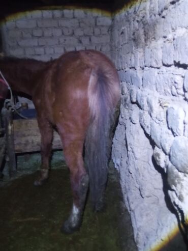 Кунан сатылат 145000 Гнедая верховая лошадь с белыми чулками на ногах. На фото — под всадником в рабочей упряжи: кожаное седло, вальтрап, уздечка с трензелем и поводьями. Корпус сухой, мускулистый,...