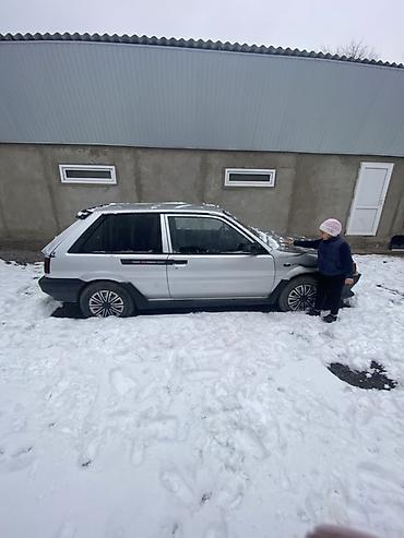 Nissan хэтчбек 2‑дверный, передний привод. Компактный городской автомобиль с практичным кузовом и просторным багажником. Серебристый цвет кузова, черный капот с аэрографией (тигр). Тонированные задние стекла, задний спойлер, фирменные декоративные колпаки на колесах.