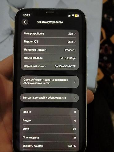 IPhone 11, 64 ГБ - Экран 6.1", Liquid Retina HD с вырезом под Face ID. - Разблокировка по лицу работает (Face ID на фото). - Память: 64 ГБ, доступно около 27 ГБ (см. скрин). - Модель: MWL82LL/A. -...