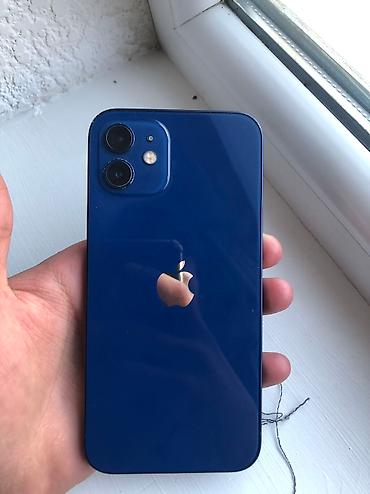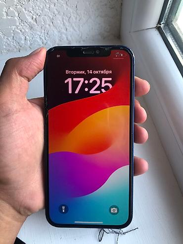 Смартфон Apple iPhone в синем цвете (линейка с плоскими гранями). Экран с вырезом под Face ID, поддержка Night Shift и True Tone. На задней панели — двойной модуль камеры по диагонали с вспышкой и ...