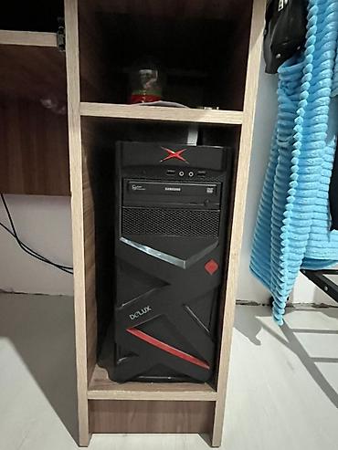 - Системный блок DCLUX в игровом корпусе (фасад с декоративными вставками, фронтальные аудиоразъёмы 3,5 мм, USB на верхней панели).
