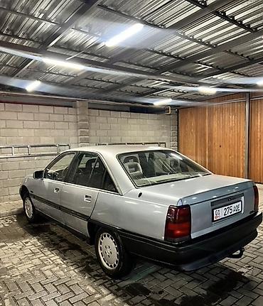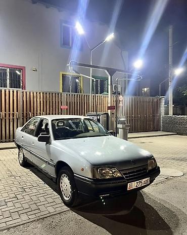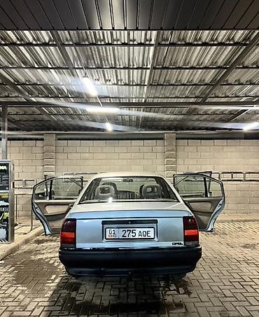 Opel Omega A седан, серебристый цвет. Кузов 4‑дверный, европейская версия. Номерные знаки KG.