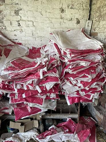 Продаю стандартные мешки б/у из под корма 40 кг вмещается есть 700 штук цена 4 сом срочно находится в Ивановке - Материал: плотный полипропилен (тканые мешки). - Цвет: белый с продольными полосам...