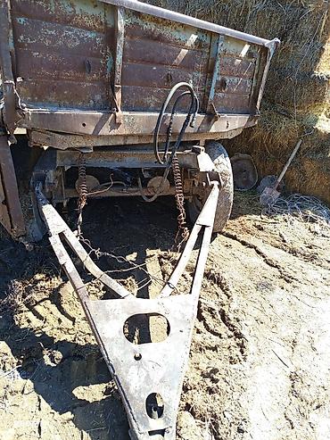 Габариты кузова и грузоподъемность визуально сопоставимы с типовыми колхозными одноосными самосвальными прицепами для МТЗ/ЮМЗ. Компоновка классическая: стальной кузов на раме, гидроподъем, рессоры, одноосная тележка.