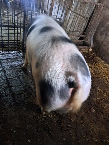 Продаётся свиноматка, возраст 1 год 10 месяцев, 1 опорос уже был 5 месяцев назад, не поросная. Вес приблезительно 200кг живым весом, длина спины от лопаток 130см. цена 45000