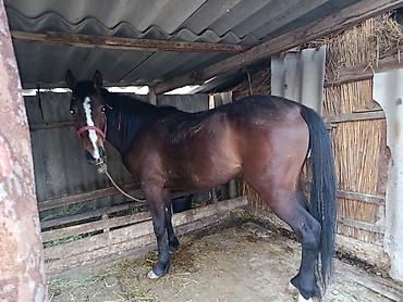 Лошадь гнедой масти. - Полукровный тип, компактное телосложение, крепкие конечности. - Возраст ориентировочно молодой/средний (по фото – полноценный рабочий рост). - Рост примерно 150–160 см в хол...