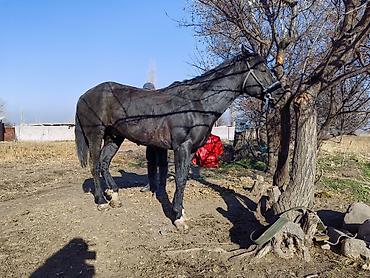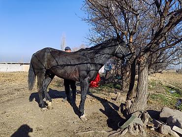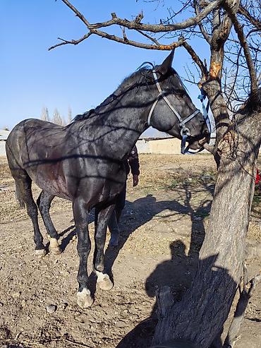 Оснащение на фото: недоуздок с чумбуром. Лошадь стоит спокойно на привязи, уверенно держит корпус, позволяет подойти и осмотреть со всех сторон. Подходит для верховой езды и хозяйственных работ; благодаря росту и телосложению может рассматриваться для упряжи.