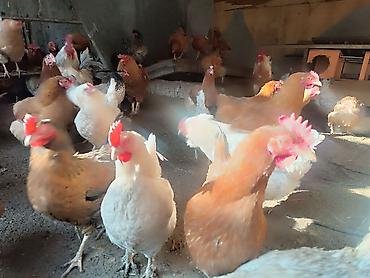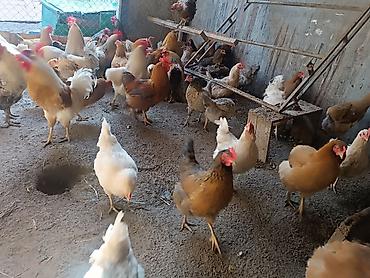 - Породный микс: белые, рыжие и пестрые особи мясо-яичного направления.