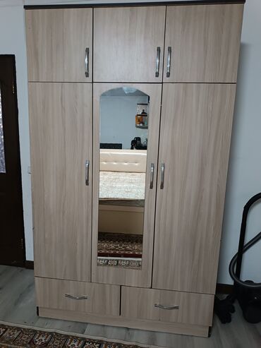 В прдоже трехстворчетый шкаф с разными расцветками размером высоту-210см ширину-120см глубину-50см доставка по городу бесплатная за зеркало по центру доплата 500 сом,
