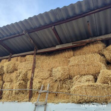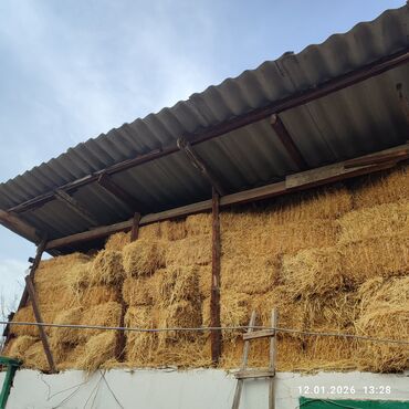 Солома ячменная в тюках под навесом из местного ячменя. Находится в с