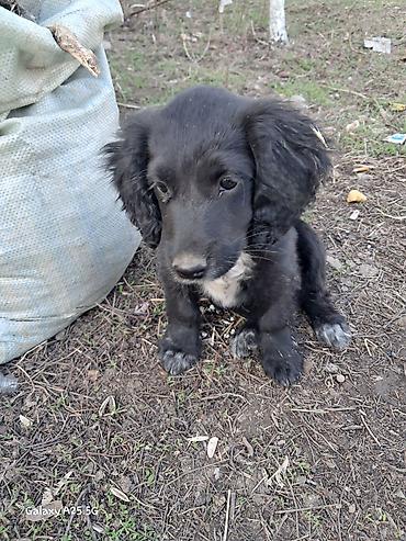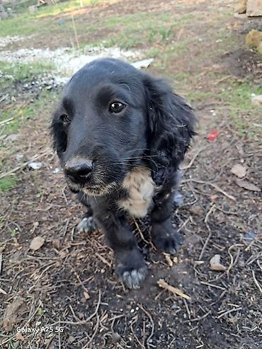 Щенок, спаниель, родился 1 января. Мать "Русский спаниель" "Отец Кокер-спаниель" Окрас черный с белой грудкой и «носками» на лапах. Мягкая средне‑длинная шерсть, висячие уши, массивные лапки. Компактный, ориентировочно вырастет в собаку среднего размера. Спокойный, ласковый, контактный, хорошо идет на руки и любит общение. Подойдет для квартиры или дома.