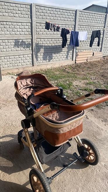 Универсальная коляска-люлька 2 в 1, бежево-коричневый цвет, стеганая ткань.
