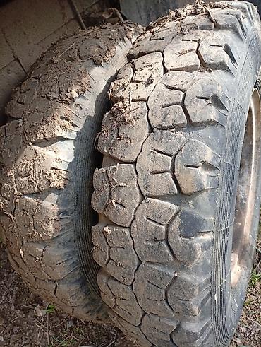 - На фото — комплект грязевой/вездеходной резины с крупным протектором.
