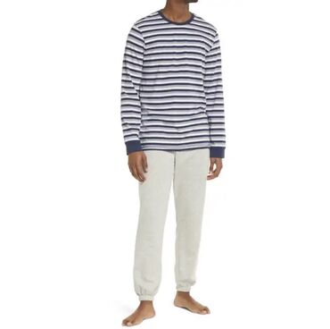 Мужская пижама из смесового хлопка.Свернитесь калачиком с чашкой чая или проведите время с семьей в этой повседневной пижаме из смесового хлопка, которая сочетает в себе удобный топ с длинными рукавами и спортивные штаны.Верх 60% хлопок, 40% полиэстер; нижняя часть состоит из 60% органического хлопка, 40% переработанного полиэстера.Машинная стирка, сушка в стиральной машине.Этот продукт содержит не менее 50 % материалов, полученных из экологически чистых источников.