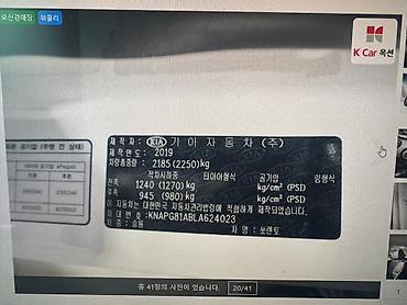- Год изготовления: 2019 (табличка производителя Kia на стойке)