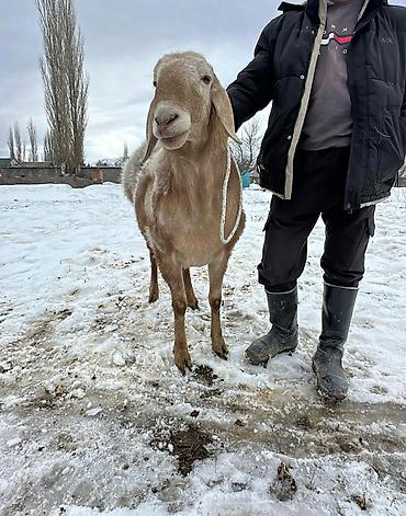 Овца/баран мясо-шерстного направления. Основные характеристики: - Крупная особь, вытянутое туловище, мощный корпус. - Высота в холке около 90 см (на фото замер рулеткой). - Одноцветная рыжевато-бу...