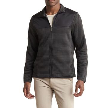 Куртка на молнии из нейлона.Гладкие нейлоновые вставки и полосатая отделка придают стильный вид этой обтекаемой куртке с молнией во всю длину и прорезными карманами.