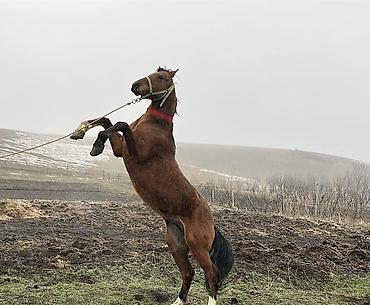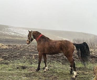 Лошади (несколько голов), масть гнедая/рыжая. Характеристики по фото: - Возраст ориентировочно молодой/средний, статная конституция. - Масти: гнедая с темными ногами и хвостом; рыжая с отметинами ...