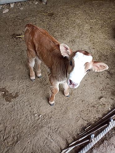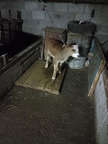 Теленок (молочный возраст) эркек музоо сатылат парода атасы шведский энеси Головей - Молодой теленок темно‑бурого окраса, активный, на крепких ногах. - Содержится в индивидуальной клетке в закрытом...