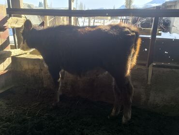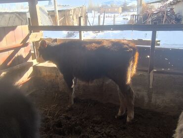 Телята на откорм - Молодняк крупного рогатого скота, биркованный. - На фото — несколько телят мясного направления, различные масти (рыжая, чёрно-белая и др.). - Содержатся в тёплом помещении, на п...