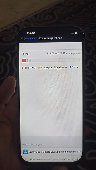 - Память занята примерно 313 ГБ из 1 ТБ (по разделам видно: программы, фото, сообщения, почта)