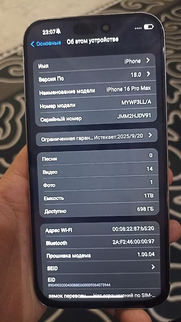 - Модель: iPhone 16 Pro Max (номер модели MYWF3LL/A)