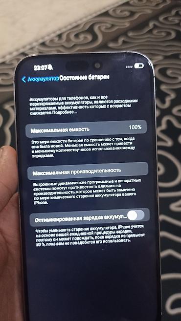- Аккумулятор: максимальная емкость 100%, оптимизированная зарядка