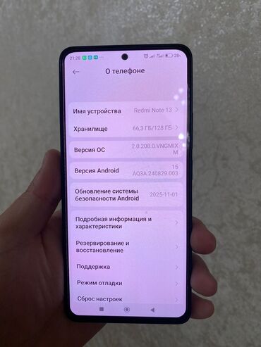 - Android 15, прошивка HyperOS (версия ОС 2.0.208.0 VNGMIXM). Обновления безопасности указаны до 2025-11-01.