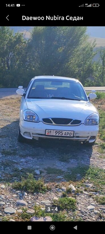 Daewoo Nubira белый седан класса D. Срочно Деу Нубира 2 сатылат обмен вариант не предлагать обмен не предлагать обмен жок обмен керек емес нак болсо 90 го берем