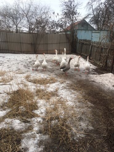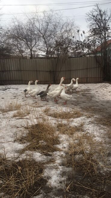- Порода: преимущественно белые тяжелые гуси, в стаде есть несколько серых особей.