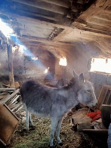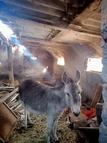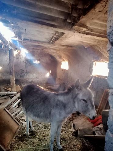 Осёл серой масти. - Порода/тип: домашний осёл, упряжной/вьючный. - Назначение: хозяйственные работы, перевозка грузов, пастьба, возможна упряжь под тележку или верховая езда с лёгкой нагрузкой. - ...