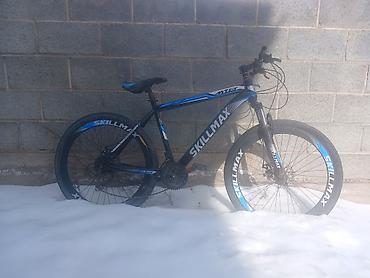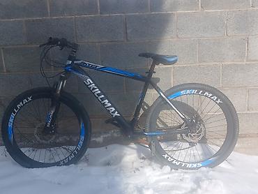 - Цвет: чёрный с синими и белыми вставками, фирменные наклейки Skillmax на раме, вилке и ободах.