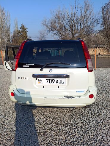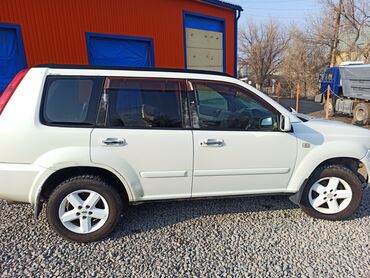 Nissan X‑Trail, белый, правый руль. Кузов универсал/кроссовер, 5 дверей, 5 мест. Полноценные рейлинги на крыше, тонированные стекла, литые диски, зимняя резина. Передний и задний бампер с противотуманными фарами, задний стеклоочиститель, высокая посадка и хороший дорожный просвет.