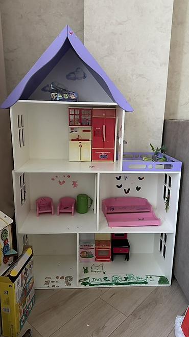 Игрушечный кукольный домик из ЛДСП, состояние хорошее, нужно только отмыть. Размер высота 135см; ширина - 90см, глубина - 35см. Цена : 3000сом