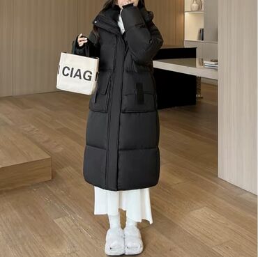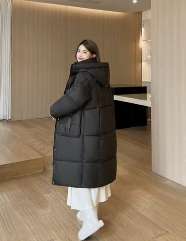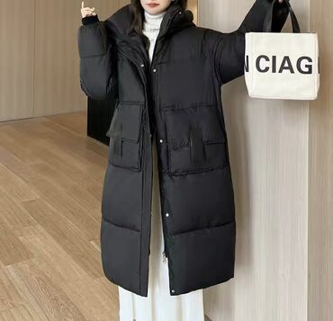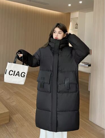 - Крой: прямой, свободный, с объёмным утеплением по всей длине