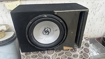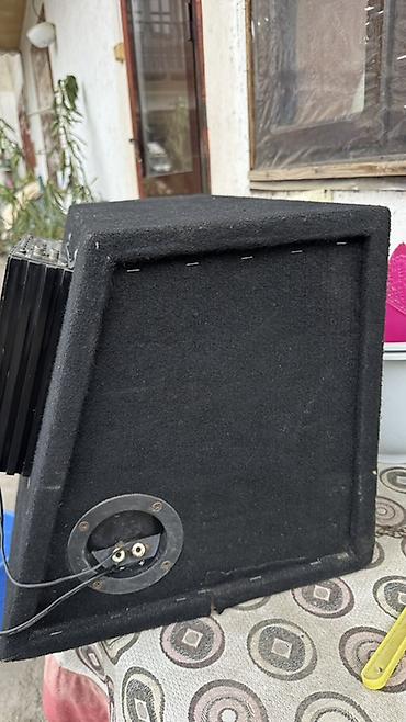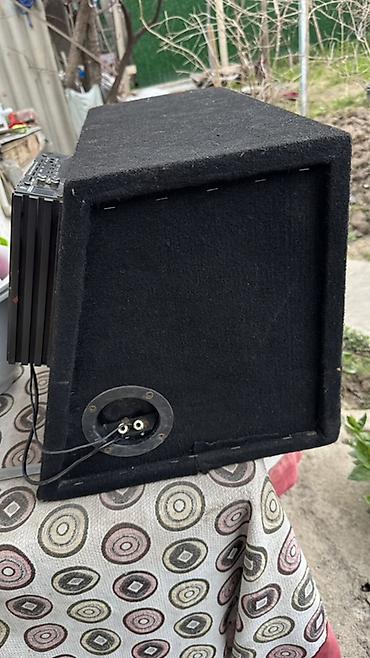 Сабвуфер в ящике с фазоинвертором + автомобильный усилитель. Характеристики и особенности: - Корпус сабвуфера: прямоугольный, обшит карпетом, фронтальный динамик, фазоинверторный порт сбоку. - Дин...