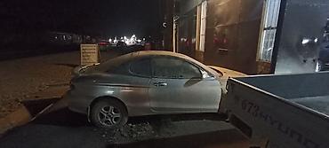 Hyundai Coupe (Tiburon) I, 2‑дверное купе, серебристый цвет, спойлер на крышке багажника, литые диски.