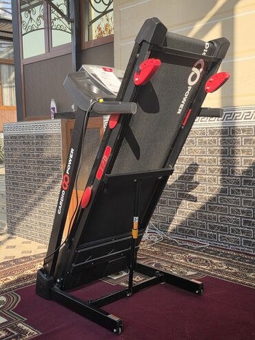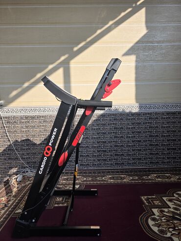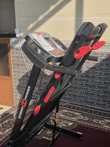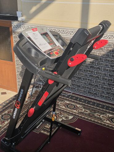 - Дизайн: черная рама с красными элементами и логотипом CardioPower, модель T20.