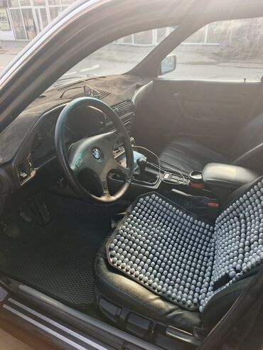 - Салон: черная кожаная обивка, передние сиденья с массажными накидками-шариками, заводской трехспицевый руль BMW, чехол на торпедо, резиновые коврики.