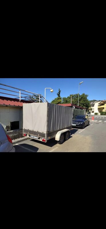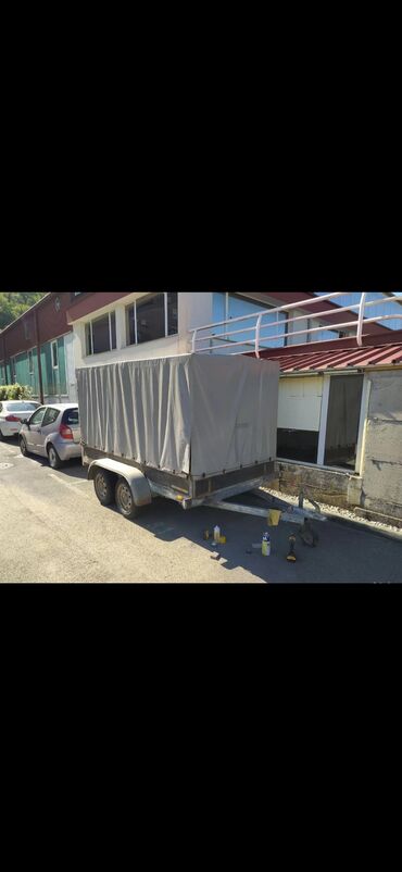 Легковой прицеп с тентом, двухосный. Характеристики и особенности: - Две оси с рессорной подвеской для повышенной грузоподъёмности и устойчивости. - Каркас рамы усиленный, сварной; элементы шасси ...