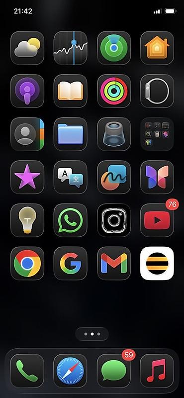 - Экран с тёмной темой, установлены популярные приложения (WhatsApp, Instagram, YouTube, Google, Gmail и др.)