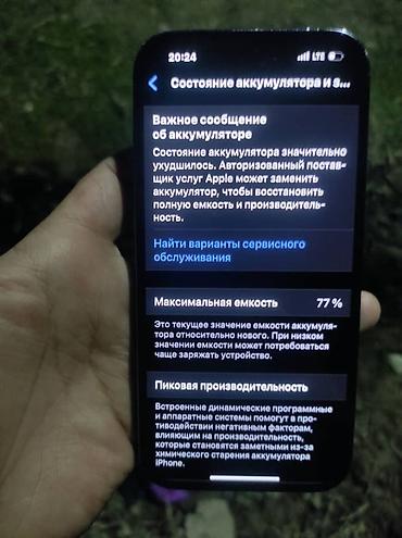 - Аккумулятор: в разделе «Состояние аккумулятора» отображается сообщение о снижении емкости; максимальная ёмкость — 77%.