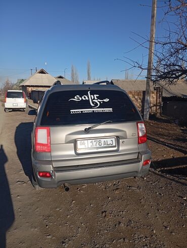 Kia Carnival (I поколение) — просторный минивэн серо‑металлического цвета с 5 дверями. Передняя часть оснащена двойными фарами, хромированной решеткой радиатора с эмблемой Kia и обвесом переднего бампера с дополнительными воздухозаборниками. На крыше установлены продольные рейлинги для крепления багажника или бокса. Литые диски, шины всесезонного типа. Боковые зеркала и дверные ручки в цвет кузова. Переднее стекло с двумя дворниками, виден отдельный третий ряд сидений — салон рассчитан на 7 мест, сиденья со съемными/складывающимися подголовниками. Номерной знак формата KG. Отлично подходит для семьи и поездок с большим багажом: высокая крыша, удобная посадка, широкий проем задних дверей.