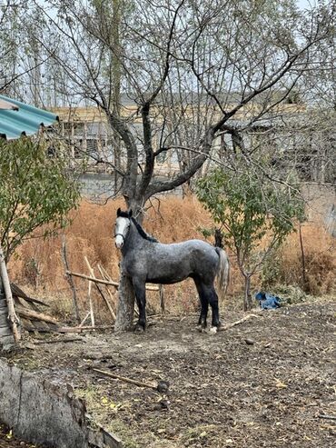 Лошадь серой масти (гнедо‑серая, яблочно‑серая), молодая кобыла/мерин на крепком костяке.