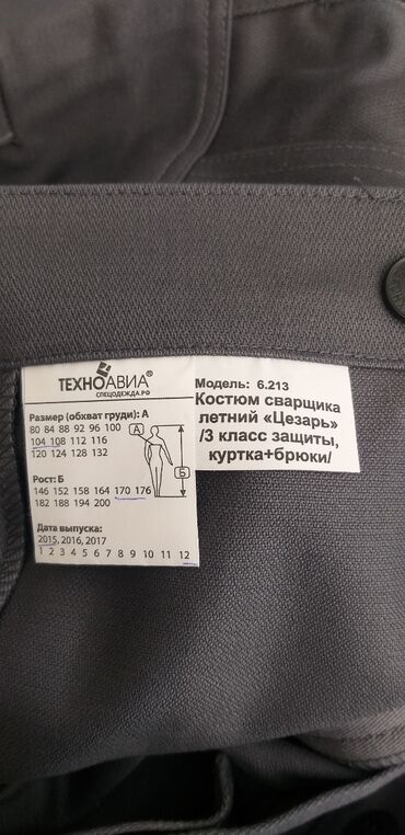 Костюм сварщика Ткань: брезентовый , огнеупорный Размеры от 44 до 62 Адрес:Ош базар , Беш-Сары ( военный ряд)