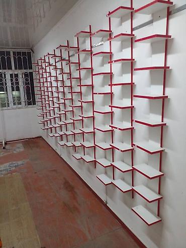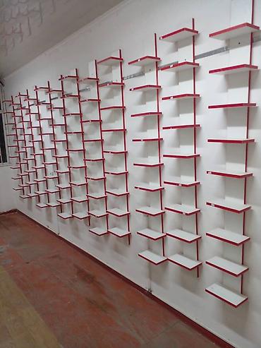- Цветовое решение: белые полки с контрастной красной окантовкой — выделяют товар и создают аккуратную сетку.