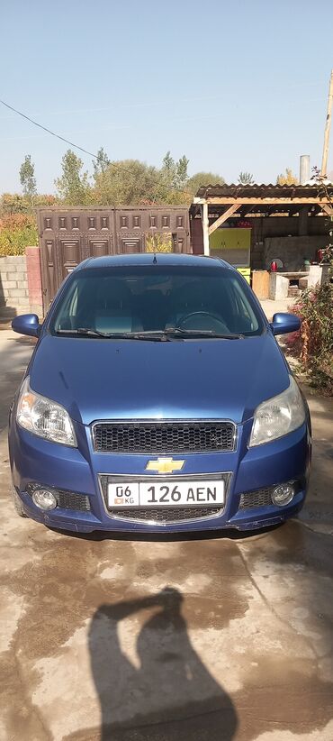 Chevrolet Aveo, синий седан. - Кузов: 4-дверный седан, синий цвет, заводская эмблема Chevrolet на решетке радиатора. - Оптика: передние фары с габаритами/ближним светом, задние фонари со стеклами ...