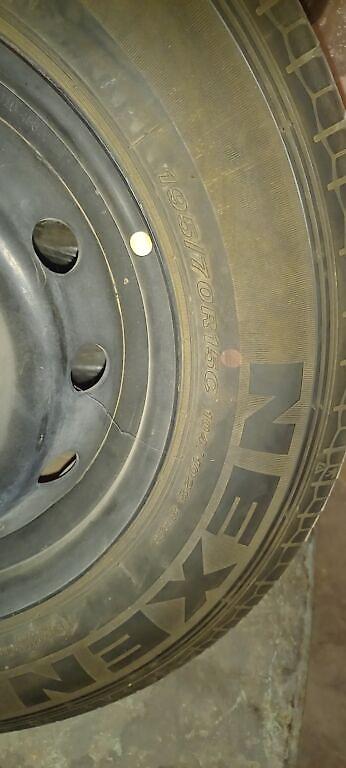 Цена за Комплект 13000 из 4 колес в сборе: легкосплавные диски + зимние шины - Диски: литые, 10‑спицевые, 5 крепежных отверстий (PCD 5×…; точные параметры не указаны на фото). Центральное отверсти...