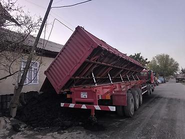 - Полуприцеп-самосвал красного цвета, предназначен для перевозки и разгрузки сыпучих и насыпных грузов: уголь, щебень, песок, грунт, зерно и т.п.