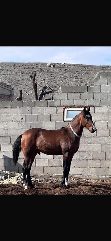 Гнедой жеребец спортивного типа.